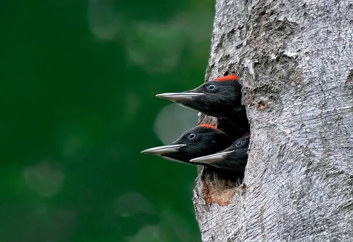 FOT. Pisklęta dzięcioła czarnego w planowanym rezerwacie „Park Repecki”. Fot. Henryk Kościelny.