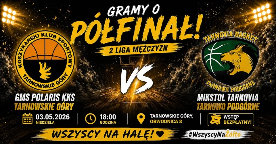 W Tarnowskich Górach szykuje się koszykarski wieczór z dużą stawką To właśnie tutaj GMS Polaris KKS Tarnowskie Góry zagra z Mikstol Tarnovią Tarnowo Podgórne w spotkaniu, które może przesądzić o awansie do półfinału. Zapowiada się sporo emocji, głośne trybuny i atmosfera, którą najlepiej poczuć na żywo. Wstęp jest bezpłatny, więc warto zajrzeć na halę i zobaczyć ten mecz z bliska.