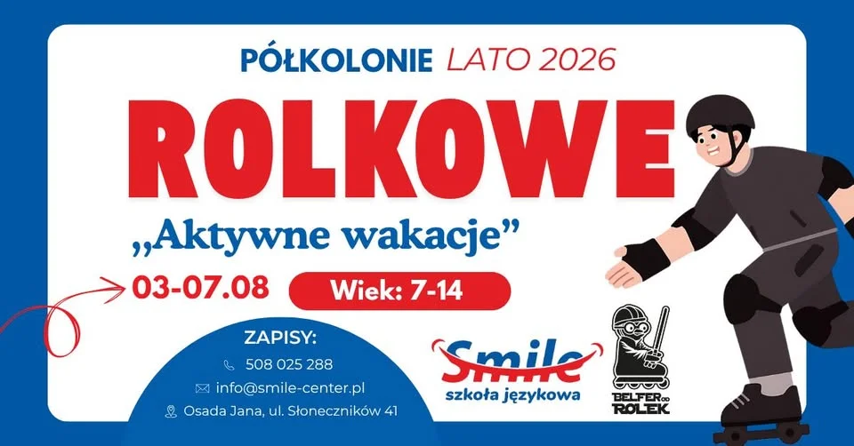 W Tarnowskich Górach szykuje się wakacyjny turnus dla dzieci, które na rolkach czują się już pewnie i chcą wskoczyć na wyższy poziom. Półkolonie rolkowe SMILE „Aktywne wakacje” to połączenie miejskiej jazdy, skateparku, ruchu i dobrej zabawy — bez nudy, za to z konkretną dawką nowych umiejętności Jeśli Twoje dziecko lubi aktywne lato, to propozycja, którą warto mieć na oku.