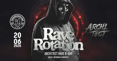 Underground Pub szykuje noc, w której parkiet ma pracować na pełnych obrotach RAVE ROTATION: ARCH1TECT BDAY to urodzinowa odsłona mocnego techno i house’u, z ciężkim groovem, surową energią i klimatem, który nie znosi nudy. Warto zaplanować ten termin, jeśli lubisz imprezy z basem, światłem i konkretnym klubowym uderzeniem.