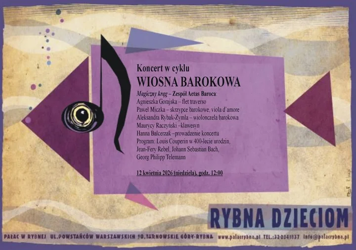 Barokowe melodie, instrumenty z dawnych czasów i odrobina muzycznej magii — wszystko to w niedzielne południe w Pałacu w Rybnej. Zespół Aetas Baroca zapowiada koncert przygotowany specjalnie z myślą o młodszej publiczności, nie tylko do słuchania, ale i do odkrywania. Warto wpaść i sprawdzić, co kryje się za „magiczny krąg” barokowych zasad i tonacji.